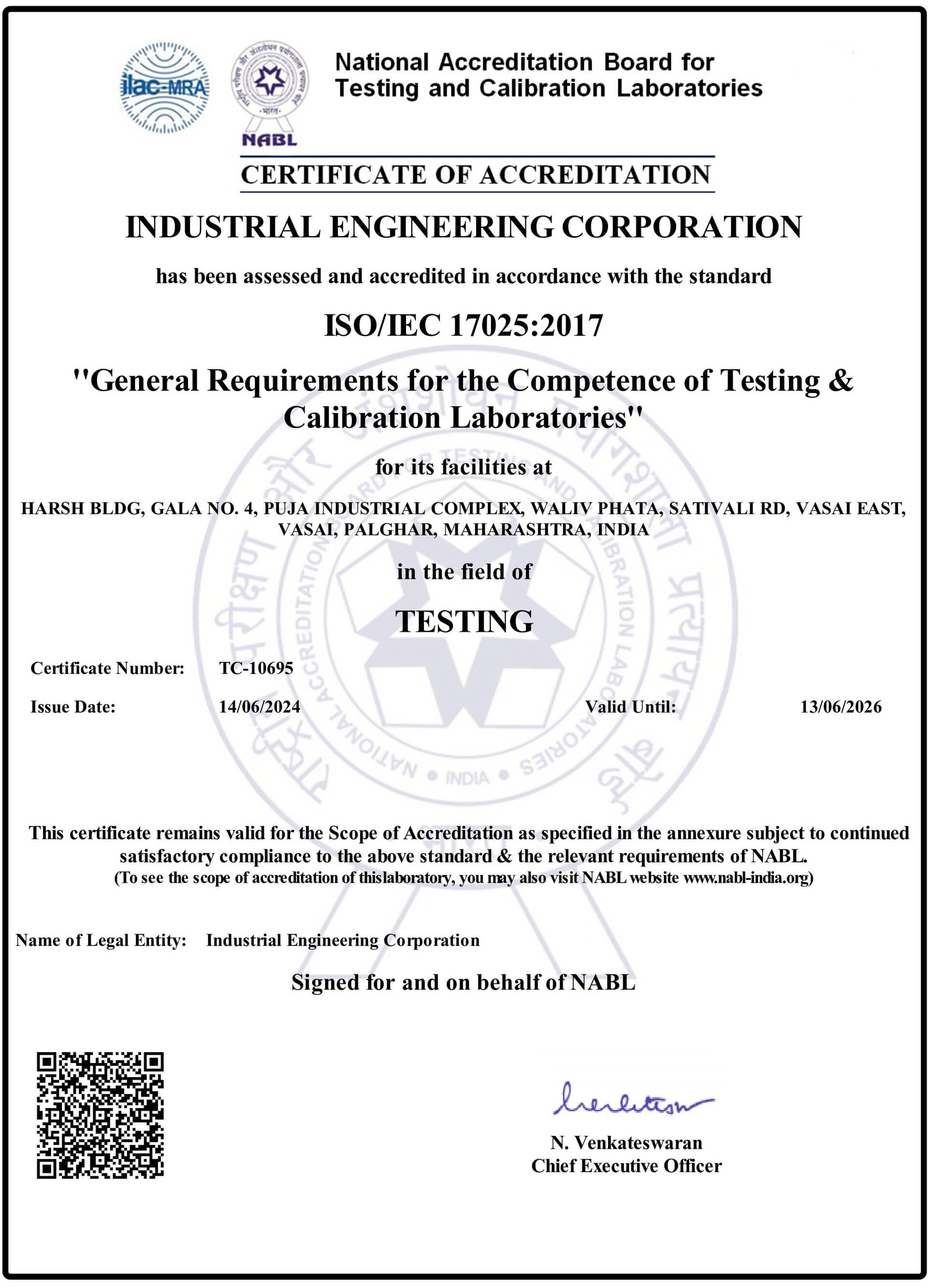 Quality control is treated as a total concept, commencing prior to the purchase of raw material & continuing through to final delivery of product that fully complies with customer needs. Industrial Engineering Corporation (IEC) employs the latest quality assurance tools and measuring equipments to constantly check the process remains within the limits of the specification. Industrial Engineering Corporation (IEC) has in house laboratory and testing facilities. A full certification service - free of charge - is offered for the entire range which covers mechanical properties, chemical composition and other tests if required.